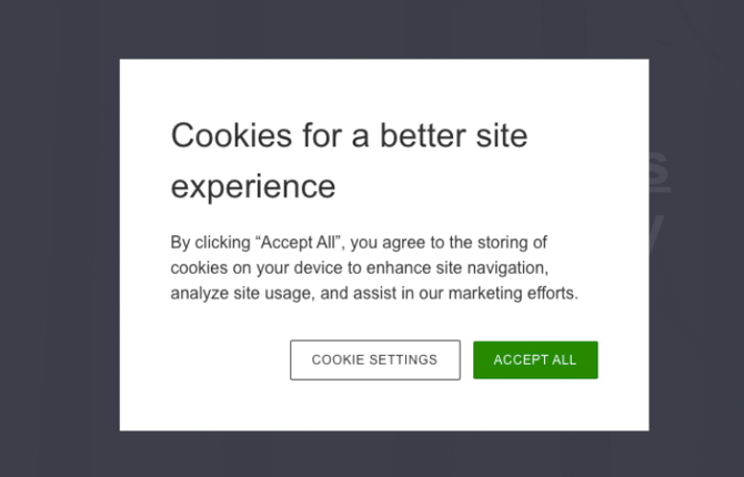 💡 The text styling of the cookie consent pop-up is based on the brand settings. The title — here, "Cookies for a better site experience" — is based on the header 3 setting. The body text is based on the paragraph text setting.
