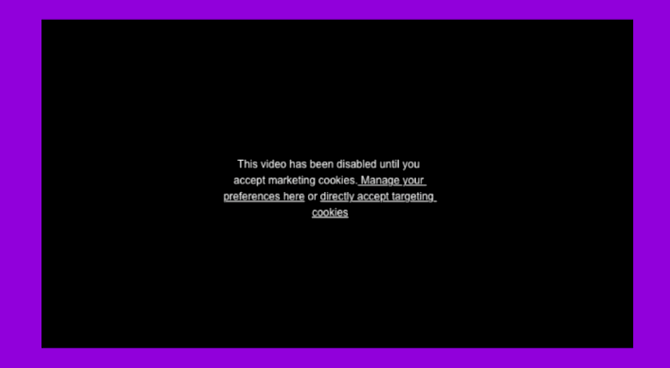 If this is the case, YouTube and Vimeo show visitors a message that lets them manage their cookie preferences or directly accept targeting cookies to view a video.